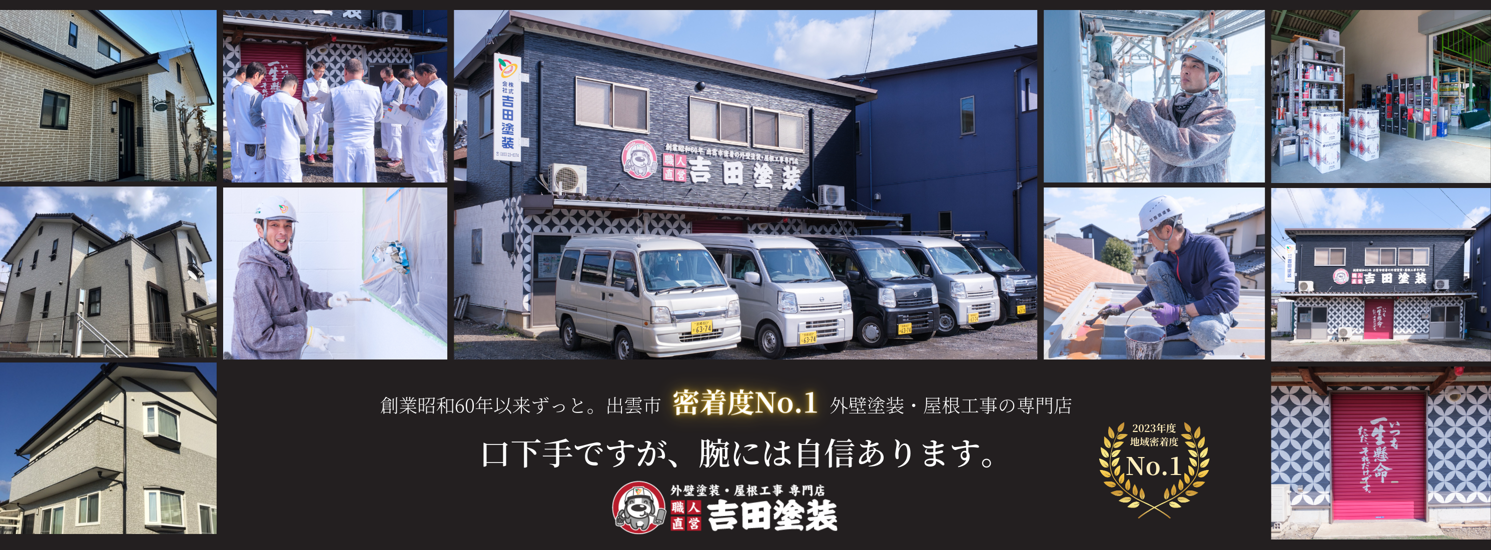 吉田塗装とは、吉田昇(初代代表親方)が昭和60年に創業して以来38年間、出雲市に根付いて活動し続けてきた外壁塗装・屋根工事の専門店です。自社で塗装職人を雇用している職人直営スタイルが特長の専門店であり、携わってきた塗装工事の件数は実に2,000件以上。