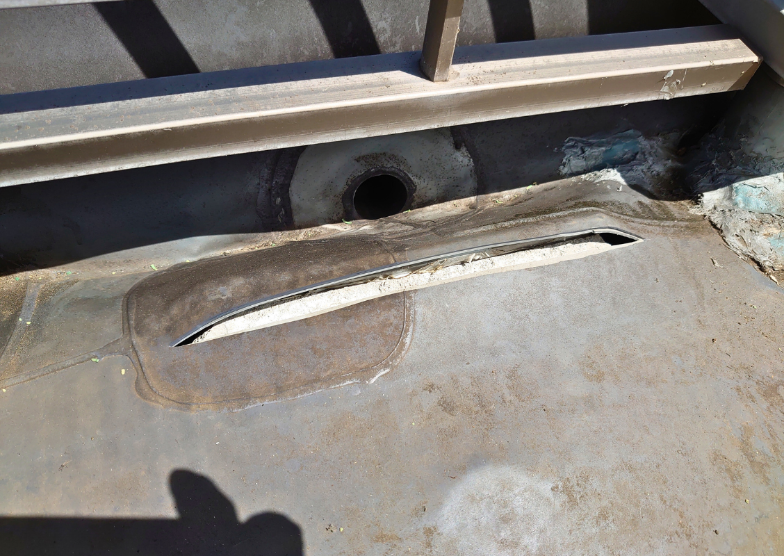 施工完了(仕上がりになります。) 改修したドレン(排水口)には新しい目皿(ストレーナー)を設置します。