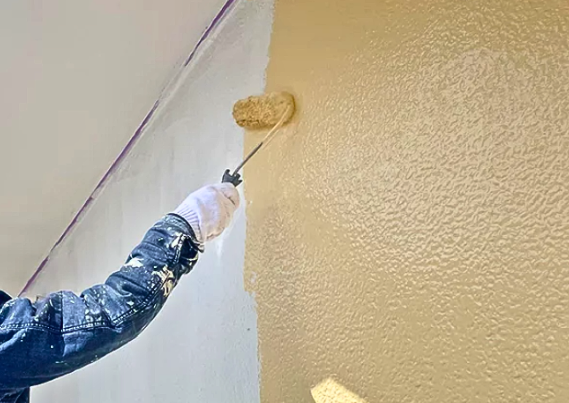また、モルタル壁の場合には、細かいヒビ割れを埋め、上塗り塗料の吸い込みを防ぎ、仕上がりをよくするために厚膜の下地強化剤を使用します。