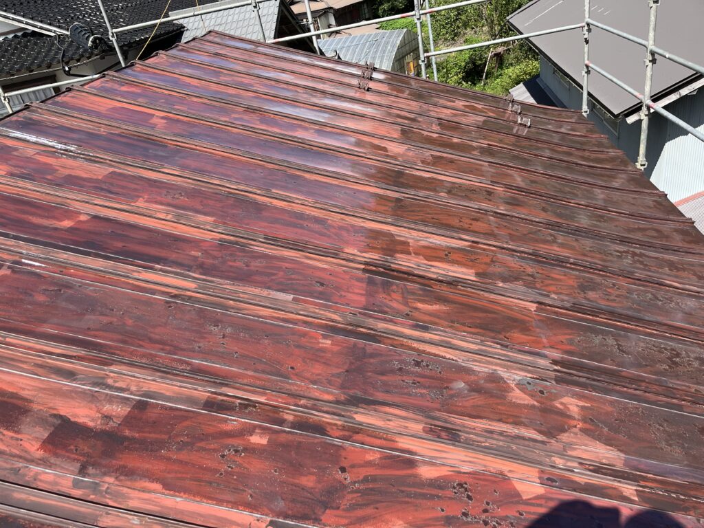 今日は奥出雲町の住宅の屋根をケレンしていました。今月に入って雨模様が続き屋根の塗装は休止状態でしたが、天気がいい日を選んでやっと下地調整の工程が完了しました。